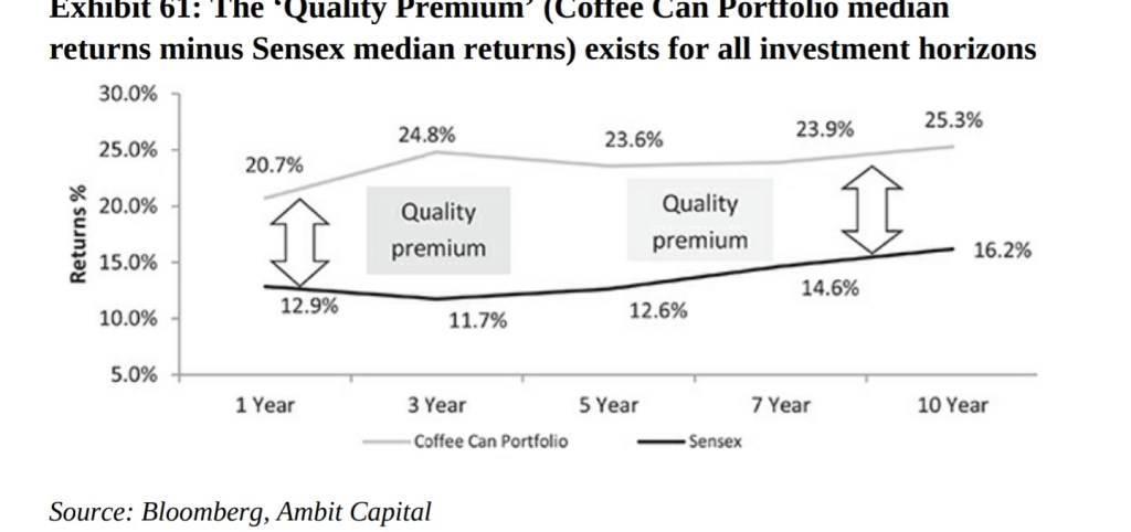 Coffee Can Investing is an old concept of the West. Where people put valuable possessions in a coffee can and hide them. After many years when they open it, they usually end up with huge profits. Coffee Can investing style can be replicated by buying the best company with a good track record & holding them for years. There are various filters use to identify quality stocks.