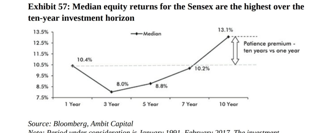 Power of compounding: Holding a portfolio of stock for ten years or more allows the power of compounding to play out its magic. Because the effect of compounding is not seen in early stage of investing it is seen in later stage of your investment horizon that should be minimum of 10 years.